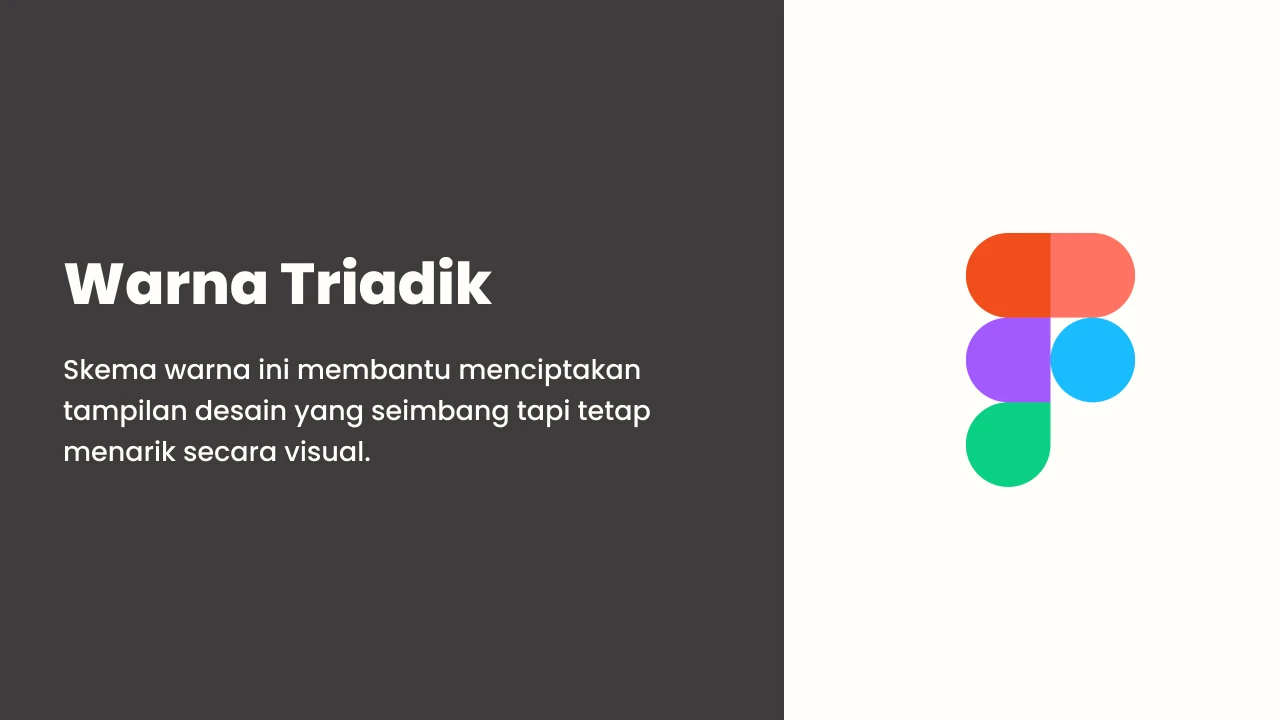 Warna triadik adalah kombinasi dari tiga warna yang berjarak sama di roda warna. Misalnya, kalau kamu pilih satu warna, dua warna lainnya akan berjarak sama dari warna itu di roda warna. Contohnya: