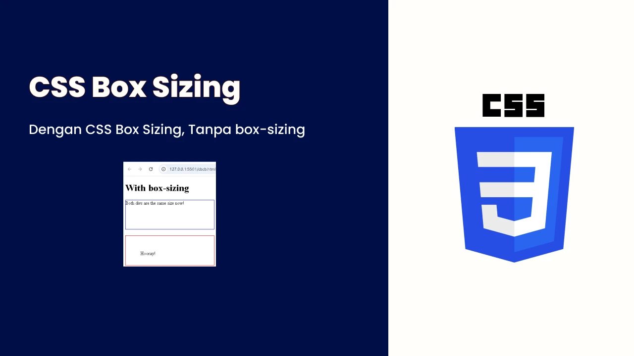 CSS Box Sizing digunakan untuk mengatur bagaimana ukuran sebuah elemen dihitung, termasuk padding dan border-nya.