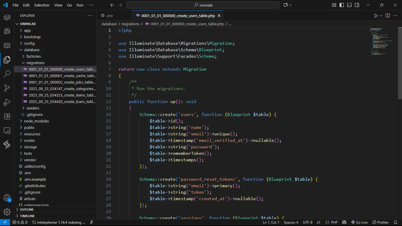 PENTING! Kenapa kita tidak membuat migration untuk users? Karena saat kita menginstal Laravel, file migration untuk tabel users sudah disediakan secara otomatis. Kita hanya perlu memodifikasinya.