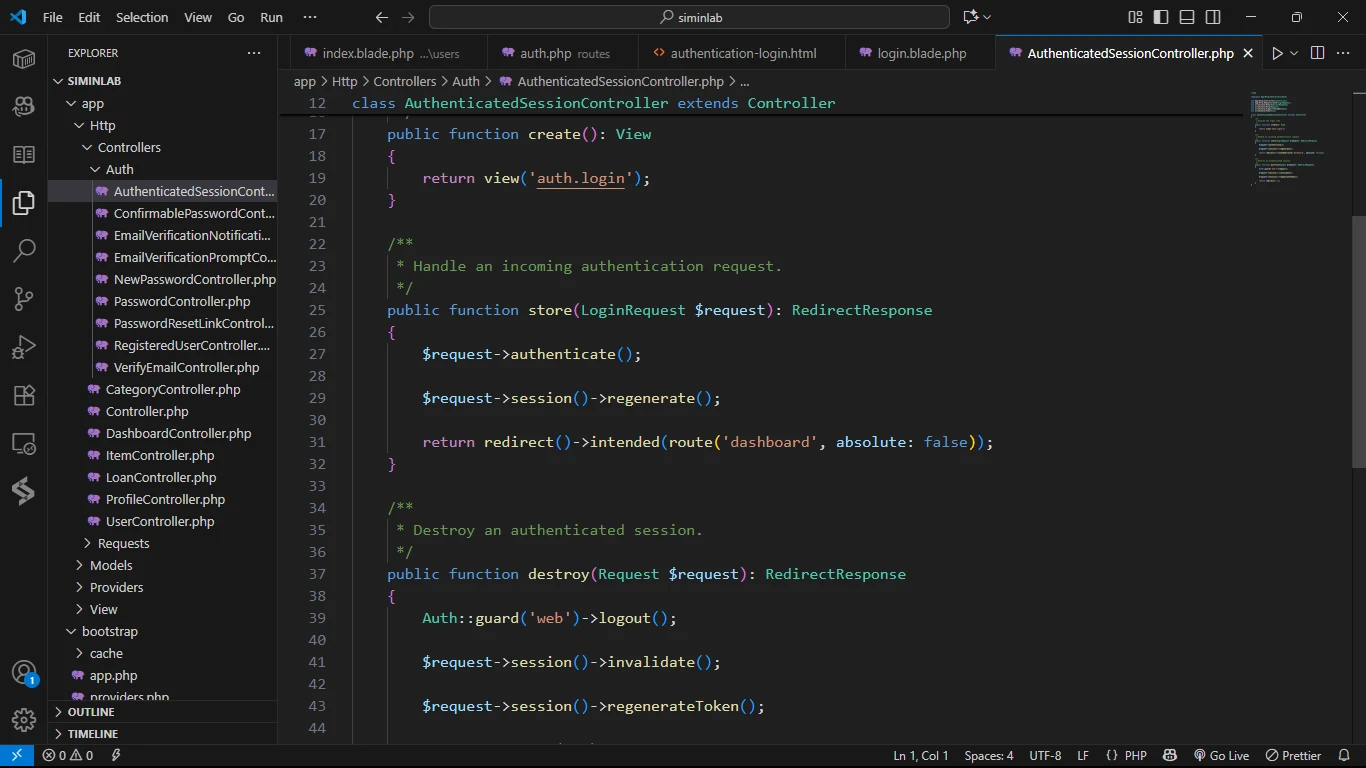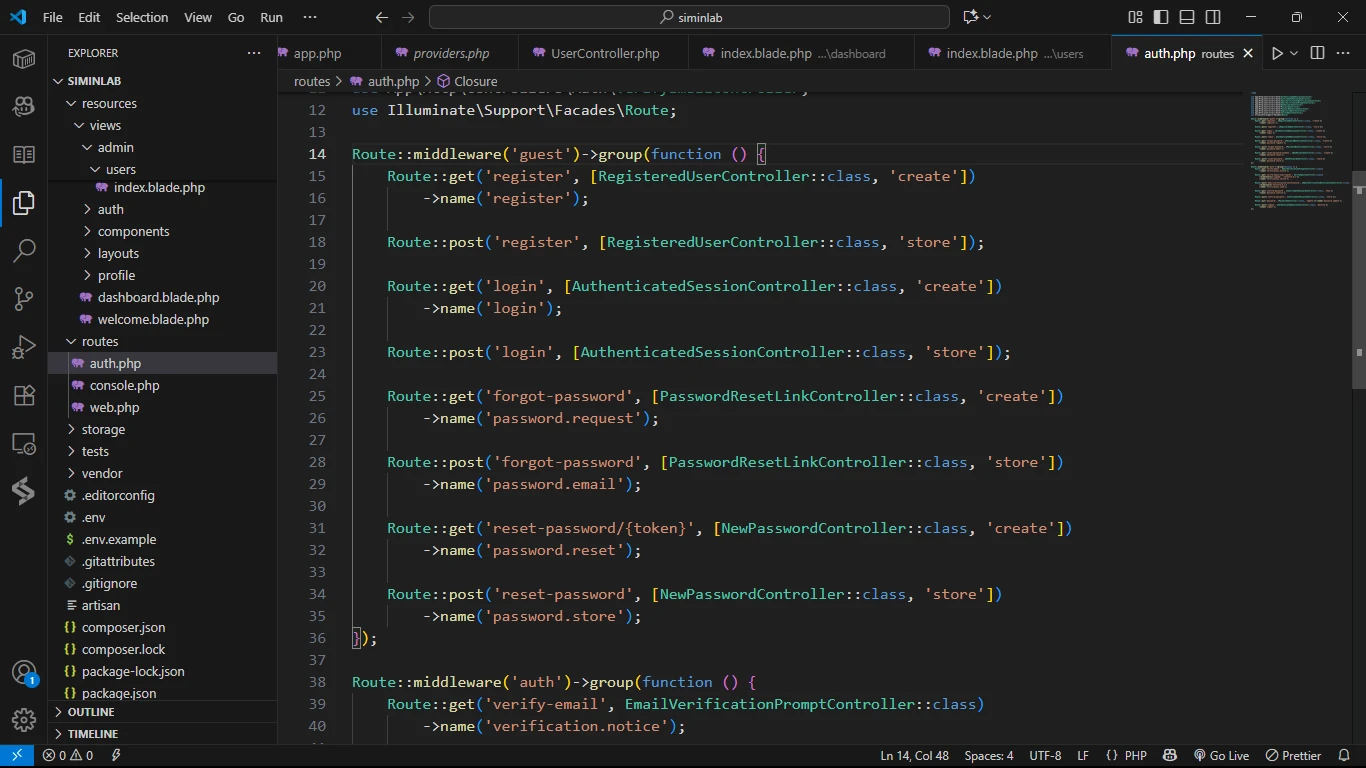 Penjelasan middleware('guest'): Ini adalah kebalikan dari auth. Middleware ini memastikan rute di dalamnya hanya bisa diakses oleh tamu (pengguna yang belum login). Jika pengguna yang sudah login mencoba membuka halaman /login, mereka akan otomatis diarahkan ke dashboard.