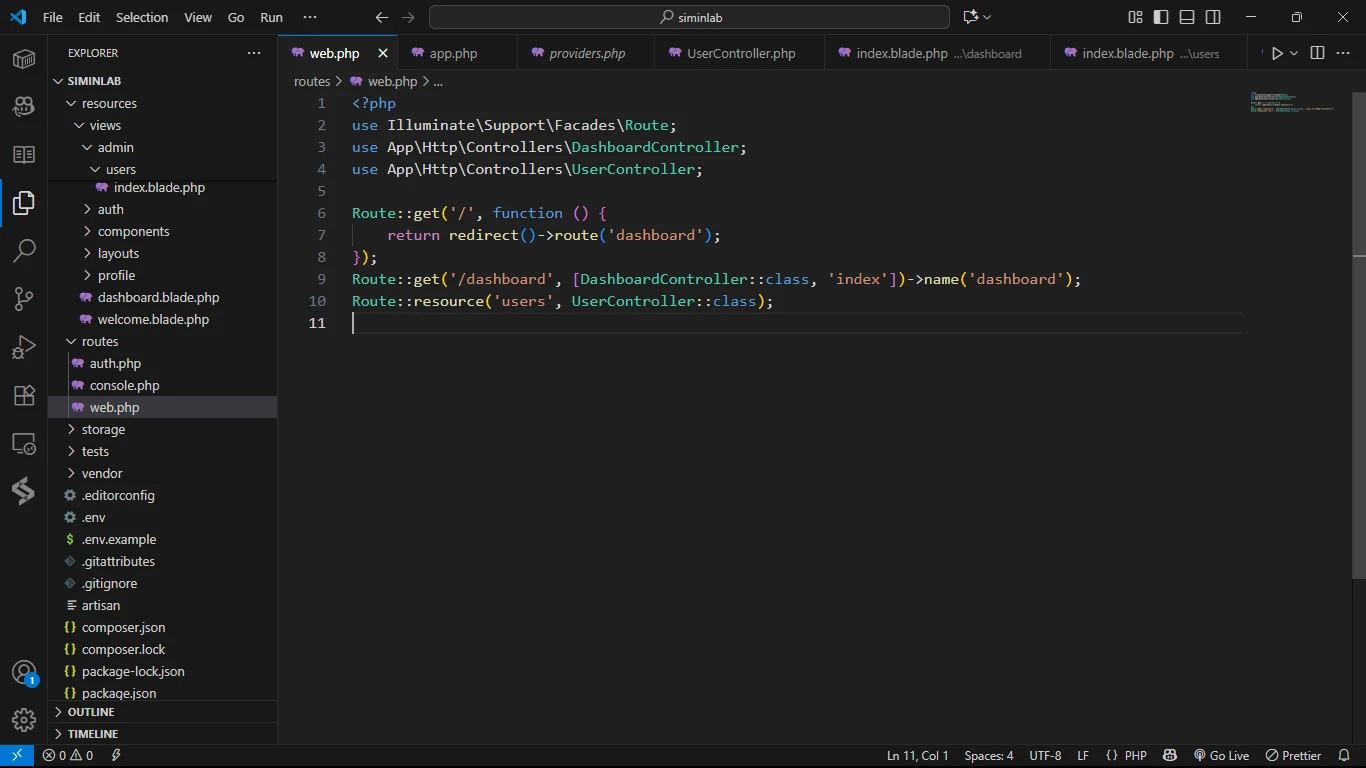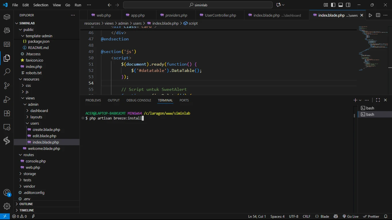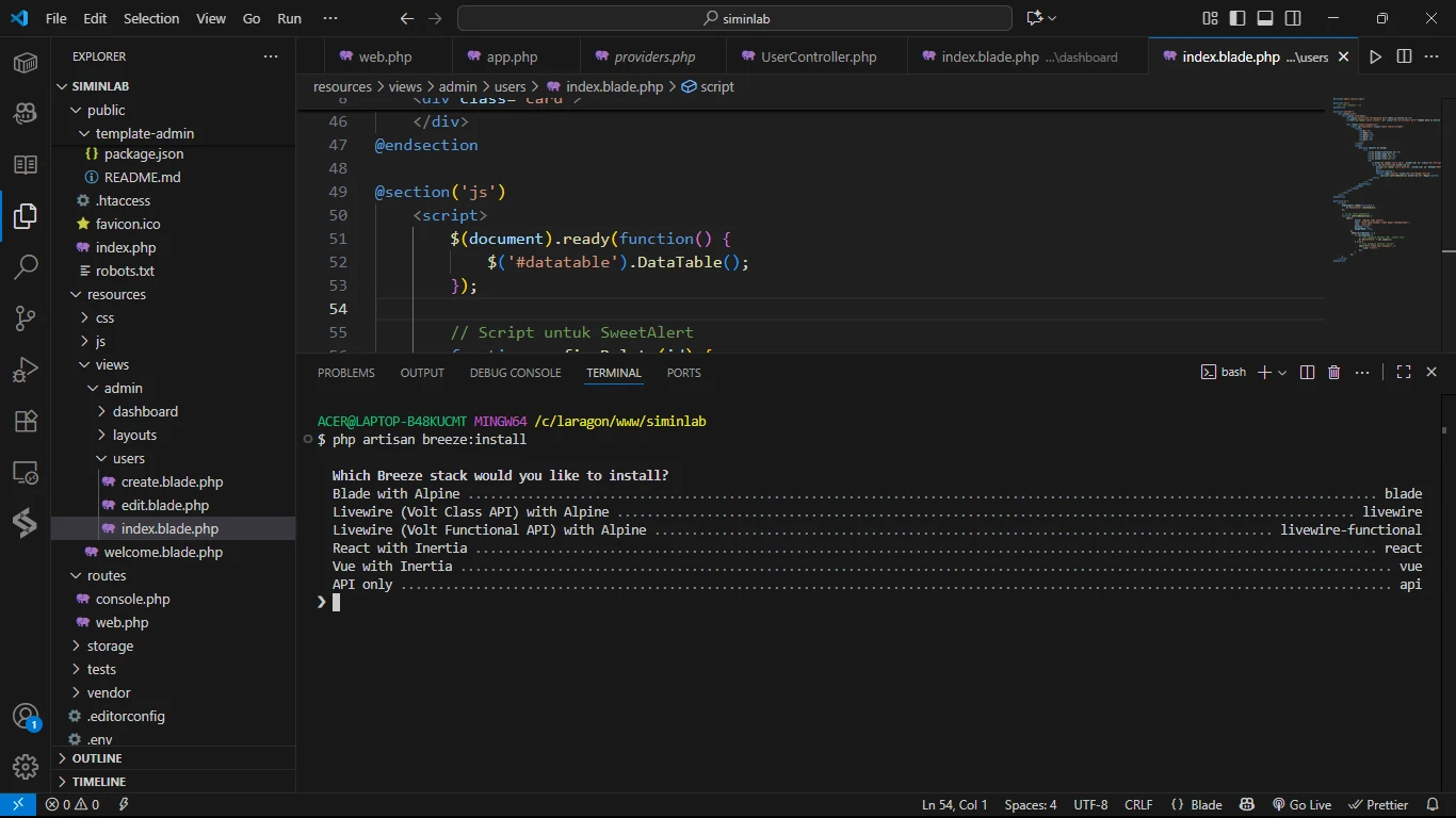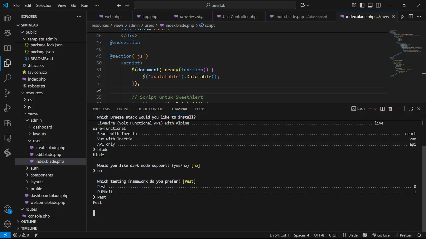 Setelah instalasi, Breeze menambahkan beberapa file dan folder penting. Perhatikan struktur baru ini: