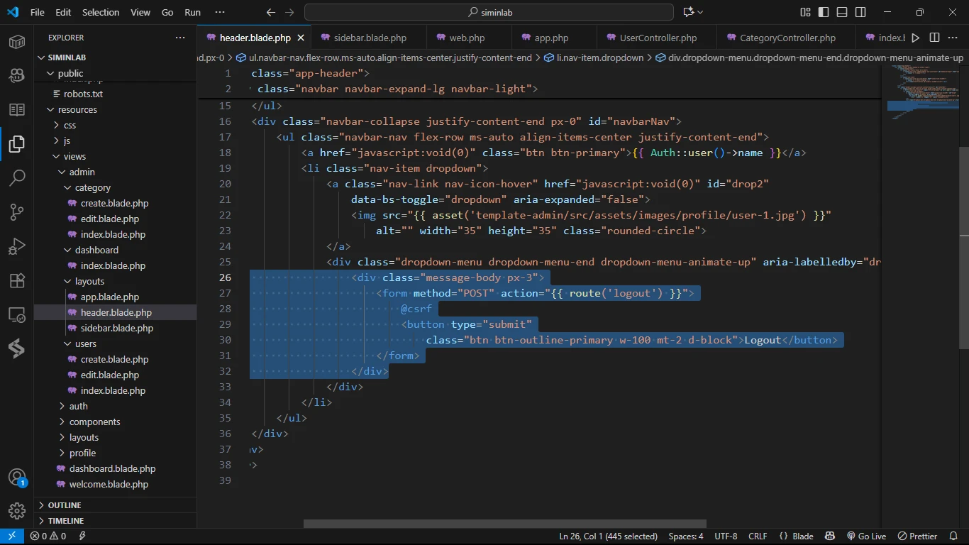 Selamat! Anda telah berhasil mengimplementasikan sistem autentikasi penuh (login dan logout) dan mengintegrasikannya dengan sempurna ke dalam template Anda.