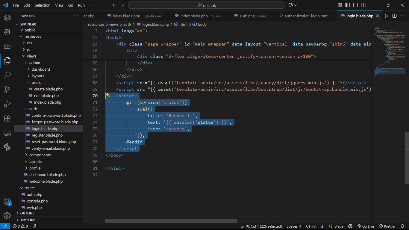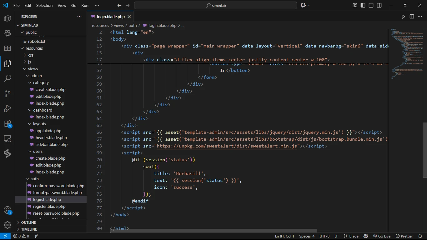 Di tahap ini, kita akan fokus membuat halaman login terlihat profesional sesuai template admin kita.