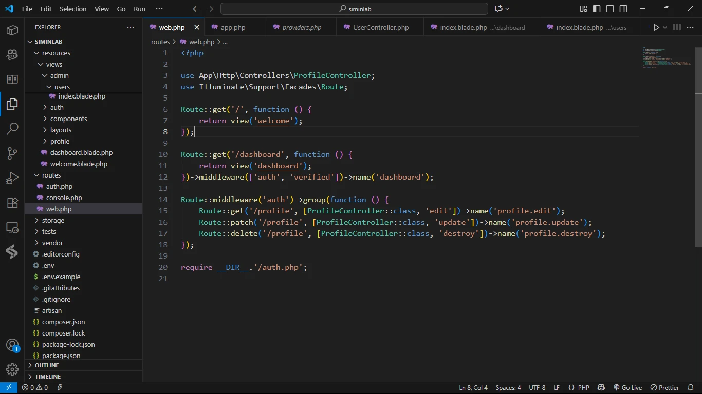 Instalasi Breeze akan menimpa file routes/web.php kita. Mari kita perbaiki dan pahami alur middleware yang digunakan.